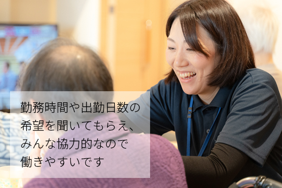 一番は、自宅から自転車で通えるということと、まだ子どもが小さいので、学校の休みに合わせて休みをいただけるというので、選ばせてもらいました。勤務時間と出勤日数を聞いてくださったので。