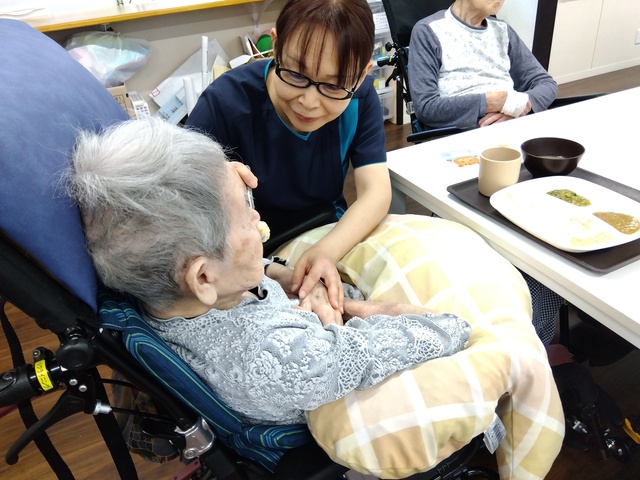 職場の雰囲気は明るく、職員も利用者様も笑顔が絶えません。年齢層はさまざまですが、皆が互いの得意・不得意を補い合いながら働いています。助け合いの精神が自然と根付いている、そんな温かい職場です。