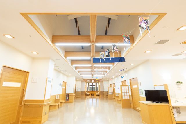 主に食事、入浴、排泄のお手伝いをしています。ご利用中に楽しく安心して過ごしていただけるよう体操やレクリエーション、季節の行事を通して交流する機会を設けています。