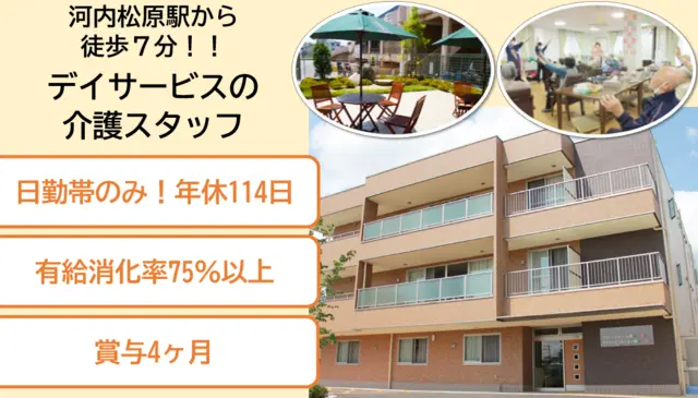 デイサービスセンターでの介護スタッフ募集です。