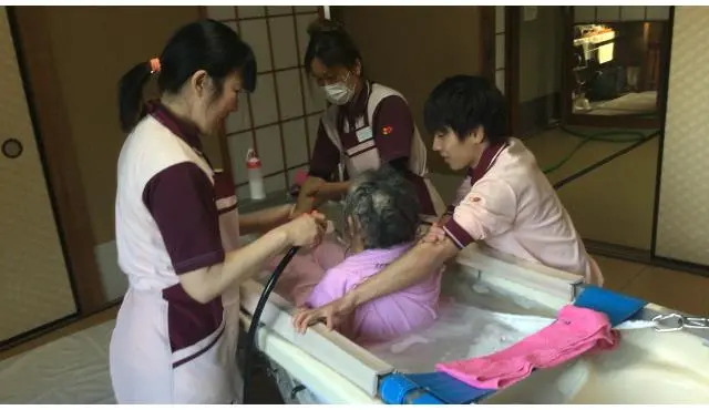 お任せするのは、入浴準備や入浴中の介護補助です。看護師さんを含めた3名1組のチーム体制なので、介護の専門知識は不要です。殆どの方が無資格未経験でご入社頂いていますが、入社時研修、同行研修がありますので安心してご就業頂けます。