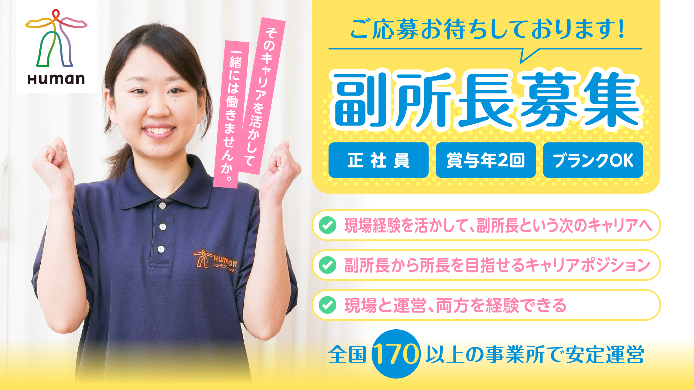 ご利用者様の「その人らしい生活」を支える介護職の募集です。