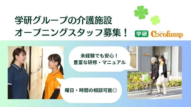 学研なら「スタッフ」→「コーチ(育成担当)」→「リーダー」とキャリアパスが明確になっています。介護実務経験を積みながら年度ごとにステップアップが可能です。