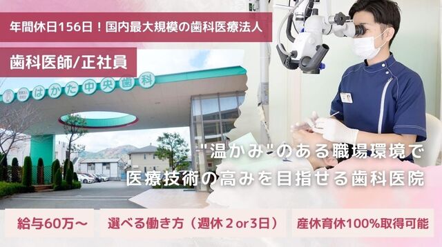 ■歯科医師賠償責任保険■定年制あり:一律60歳■再雇用制度あり■健康診断(週30時間以上勤務)■B型肝炎ワクチン接種(週20時間以上の勤務で健康保険加入者)■インフルエンザワクチン接種■制服貸与■社外福利厚生サービス(ベネフィットステーション)■外部セミナー・学会参加費補助(週3日以上勤務:50%補助、週2日以下:30%補助)