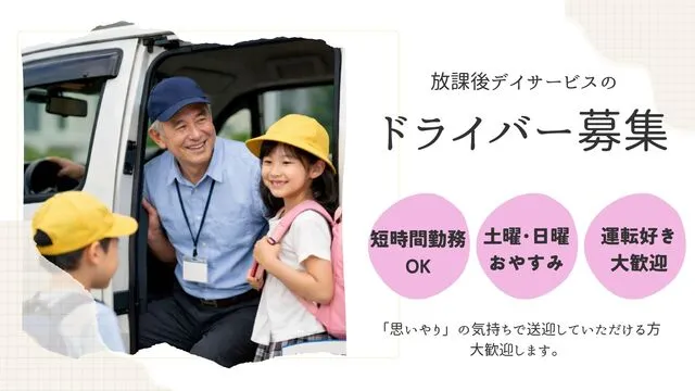 ドライバー/パート 【ビーナスキッズふじいでら】運転が不安な方には専門講師による送迎研修あり!1回あたりの運転は60分~90分