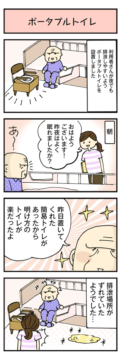 利用者さんが夜でも排泄しやすいよう、ポータブルトイレを設置しました。