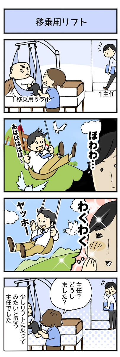 介護のあらゆる場面で活用されている移動用・移乗用リフト。皆さんは、乗ったことがありますか?